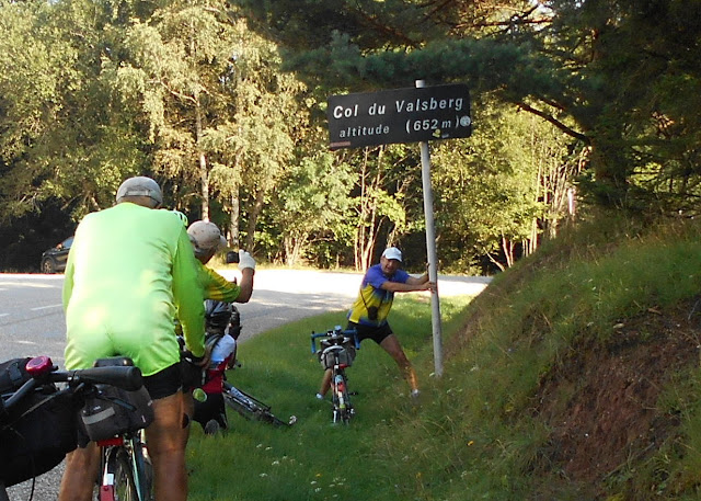 Je reviens ensuite sur mes pas pour retrouver les copines et les copains tandis qu'ils redescendent du Rocher de Dabo. Nous terminons ensemble l'ascension du Col de Valberg, dernière difficulté sportive de la journée. D'ailleurs, c'était déjà la dernière difficulté franchie lors de la cyclomontagnarde des Vosges, en 2015, une épreuve qui se terminait au bas de la descente, à Wangenbourg-Engenthal.